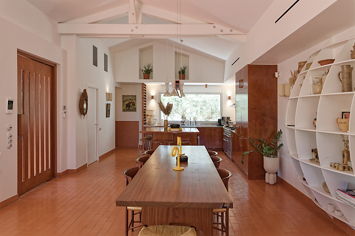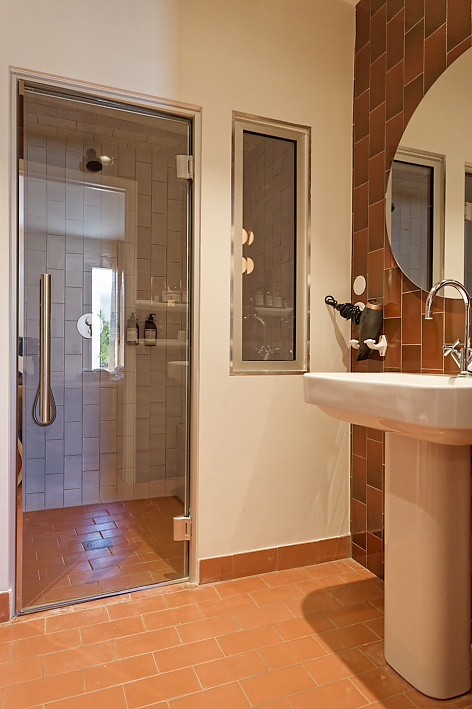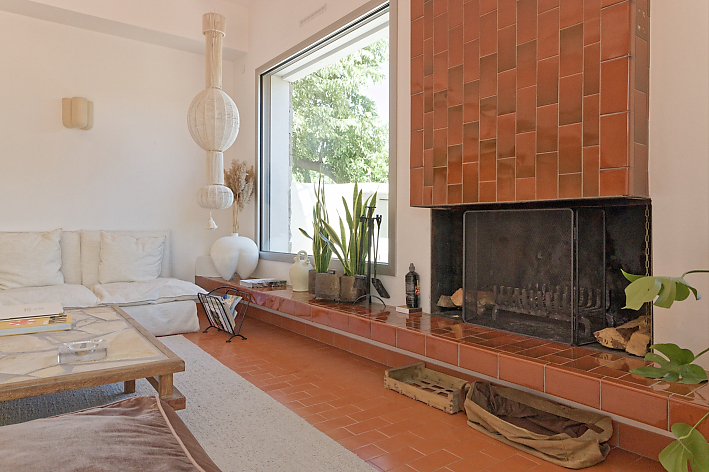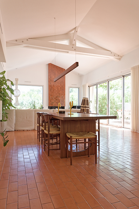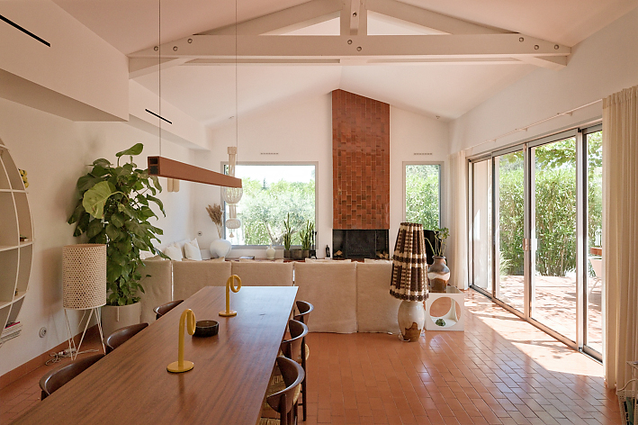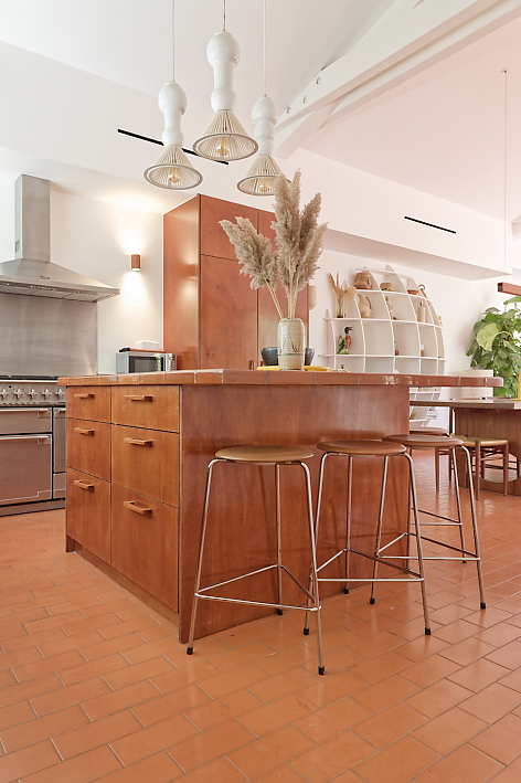 Grande hauteur sous plafond, Verrière / baie vitrée, Murs blancs / Enduits naturels, Tomettes / carrelage ancien, Déco vintage, Ambiance design