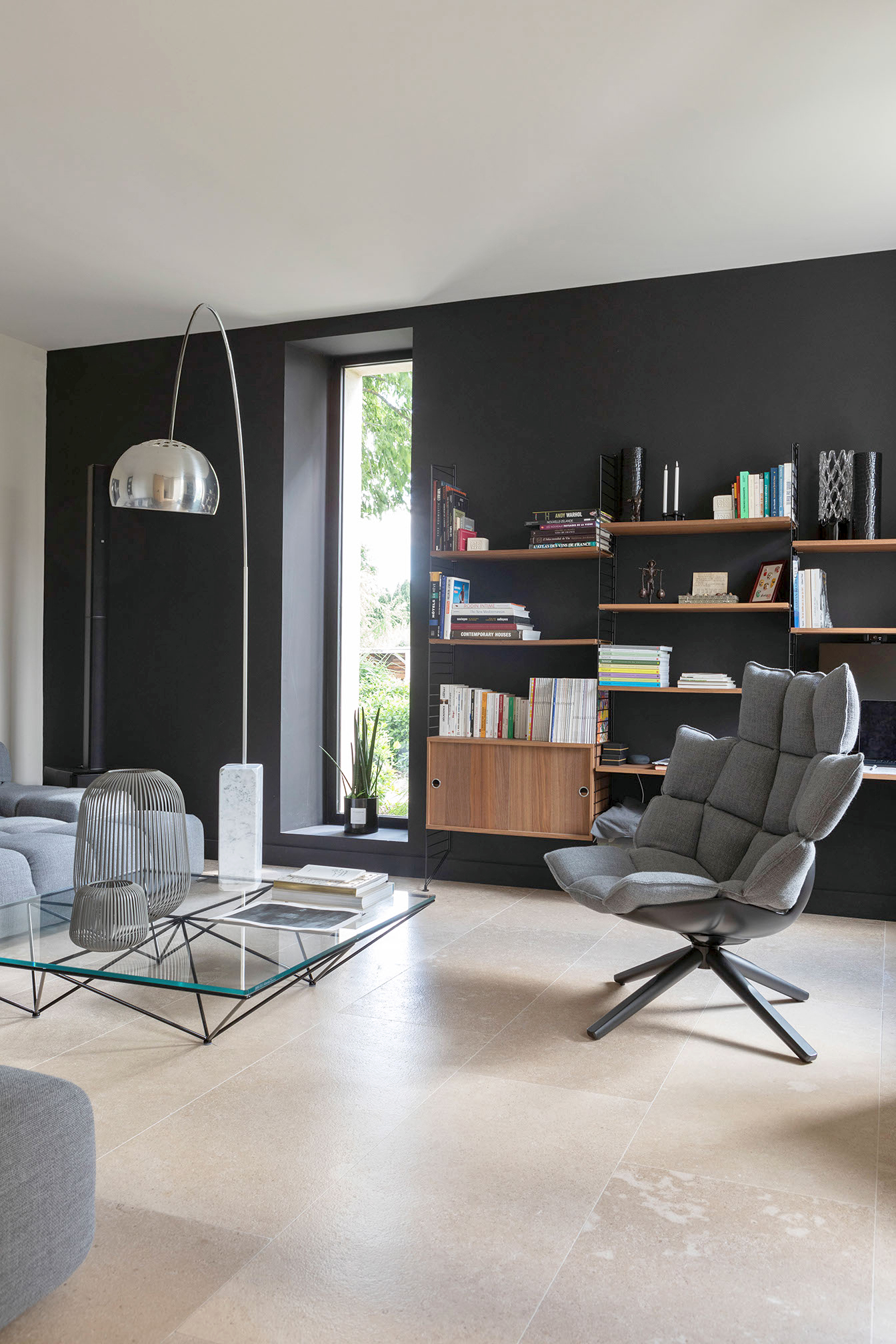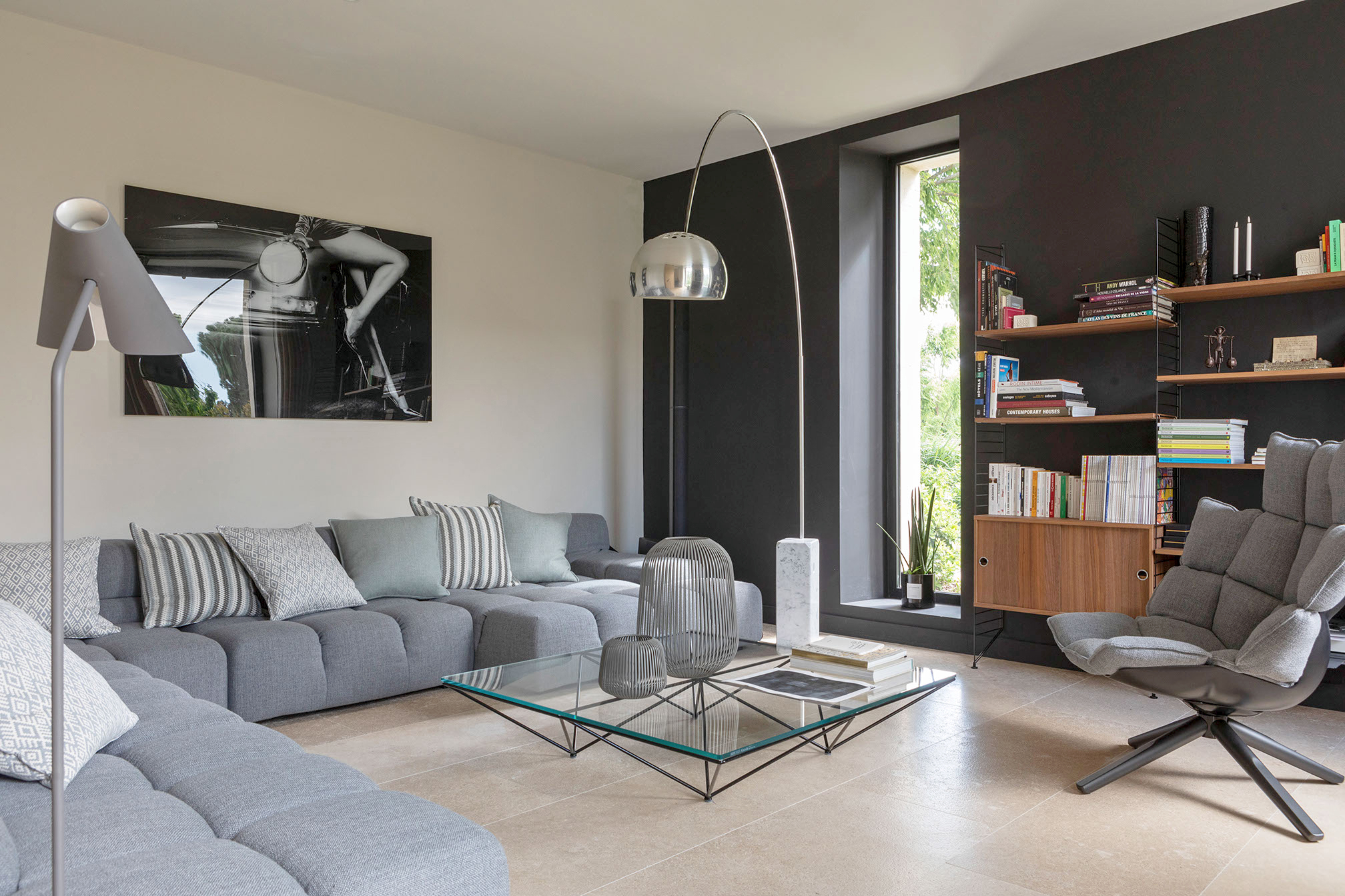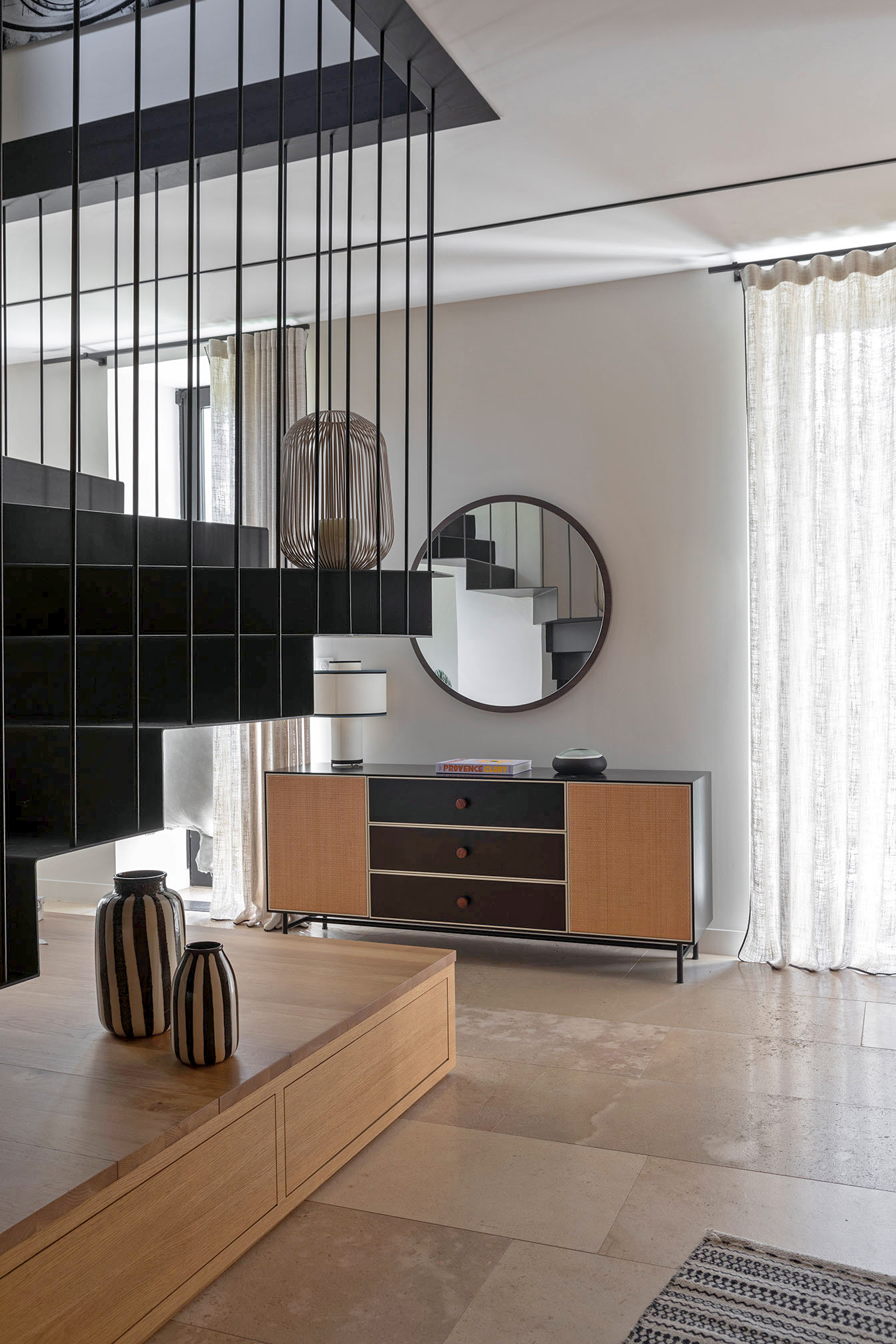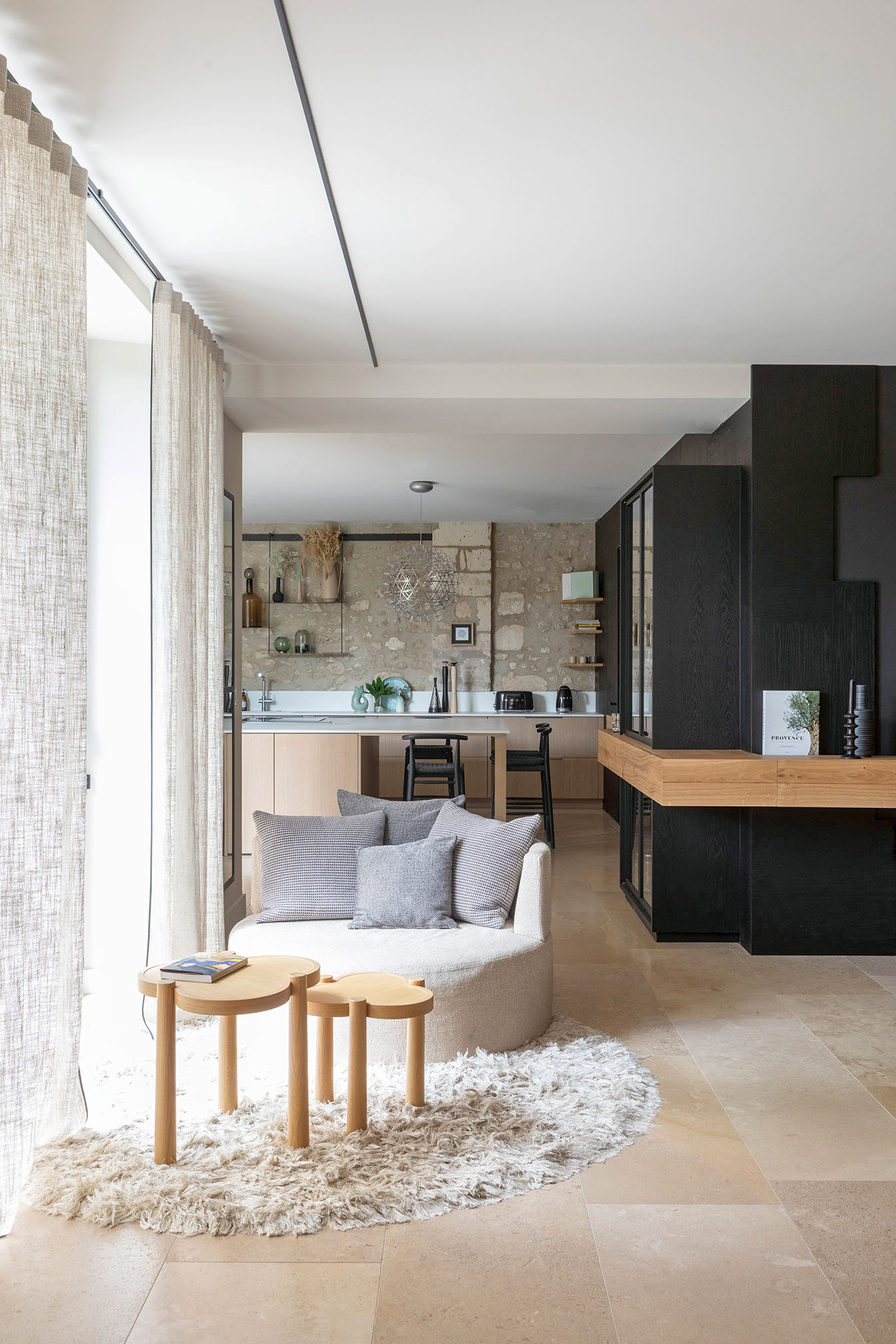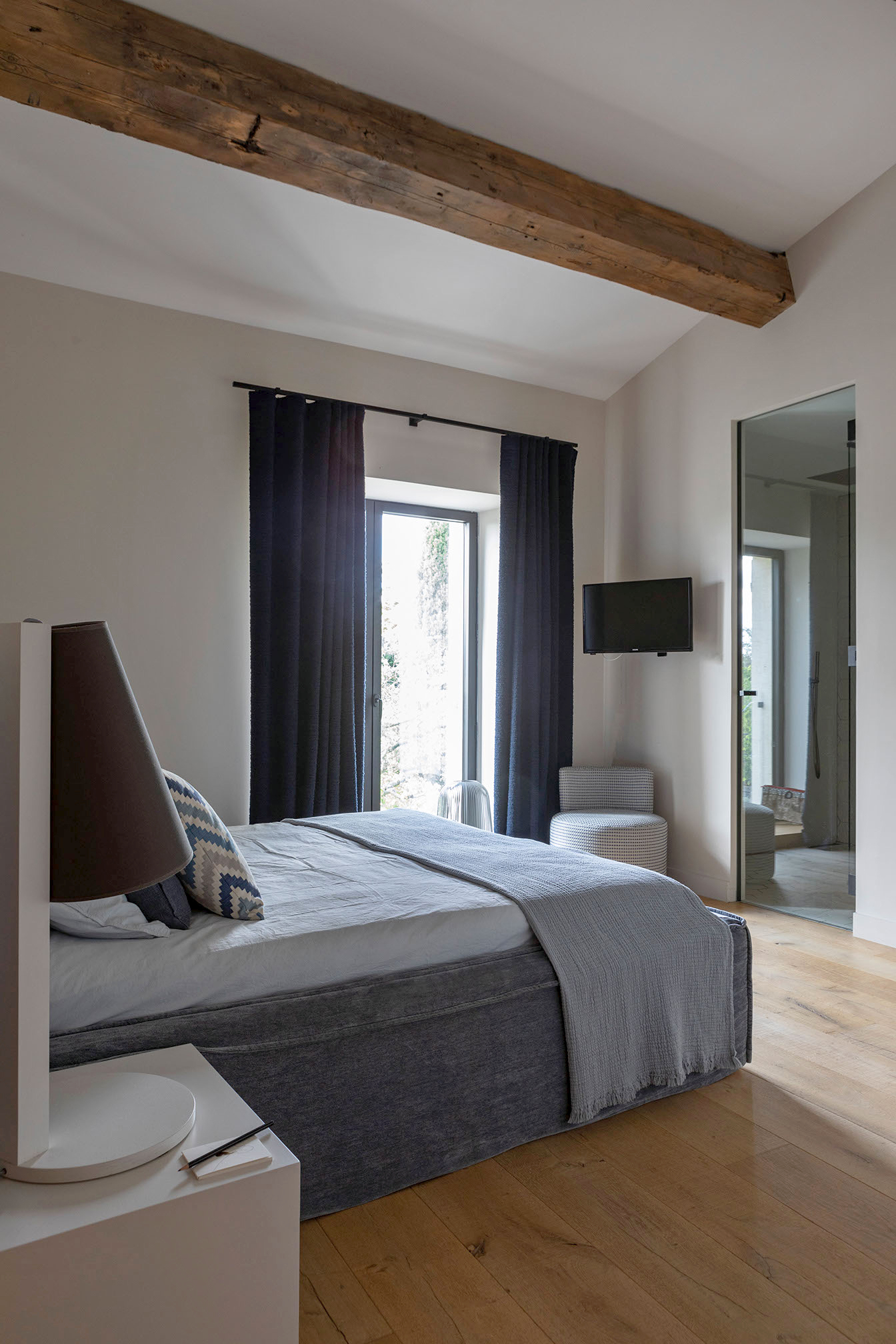 Ambiance classique, Grande hauteur sous plafond, Verrière / baie vitrée, Pierre apparente, Sol bois / parquet, Murs blancs / Enduits naturels, Tomettes / carrelage ancien, Cheminée, Charpente / poutres apparente, Ambiance rustique