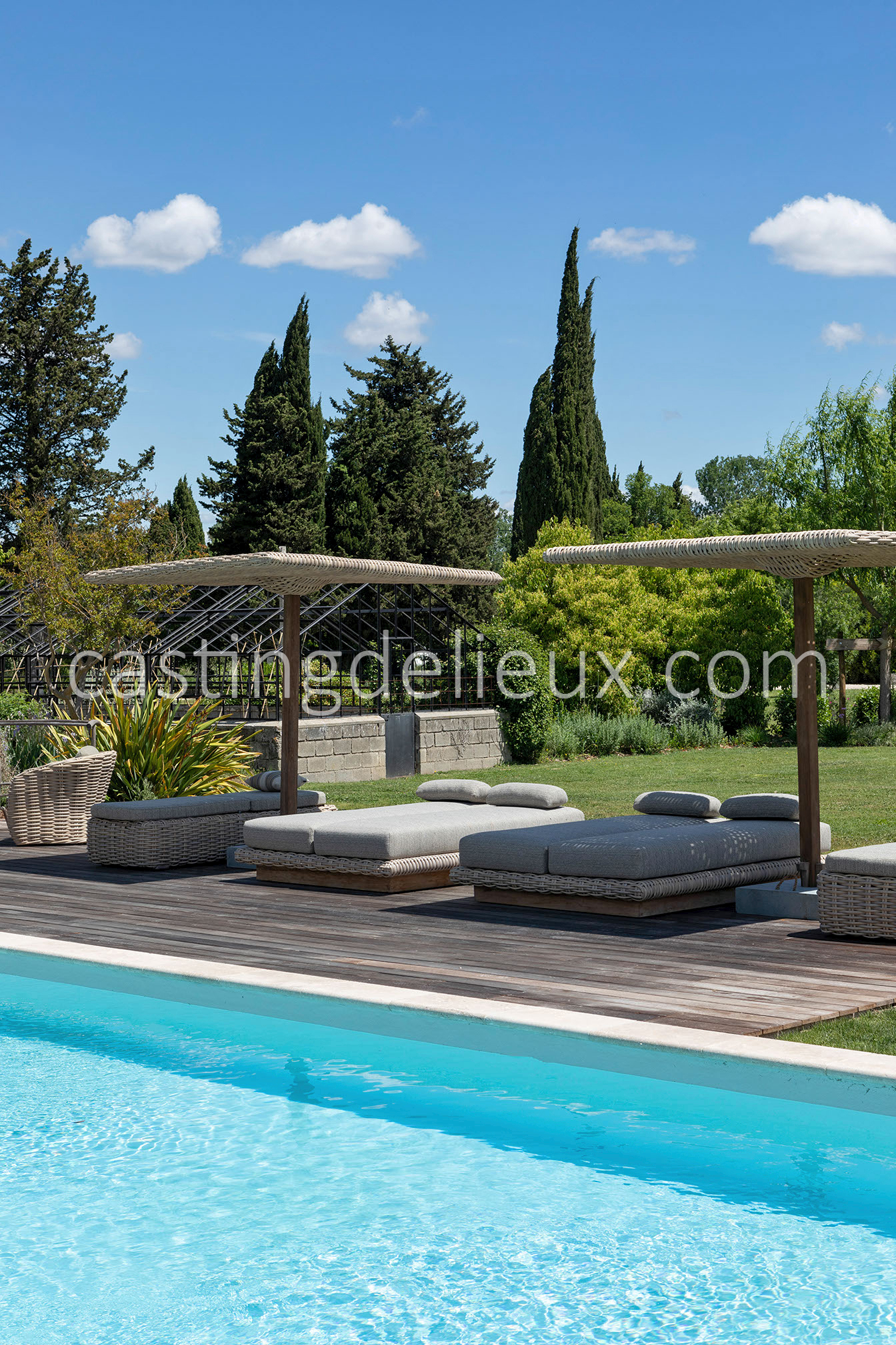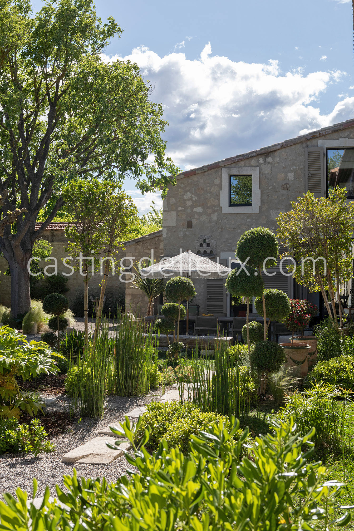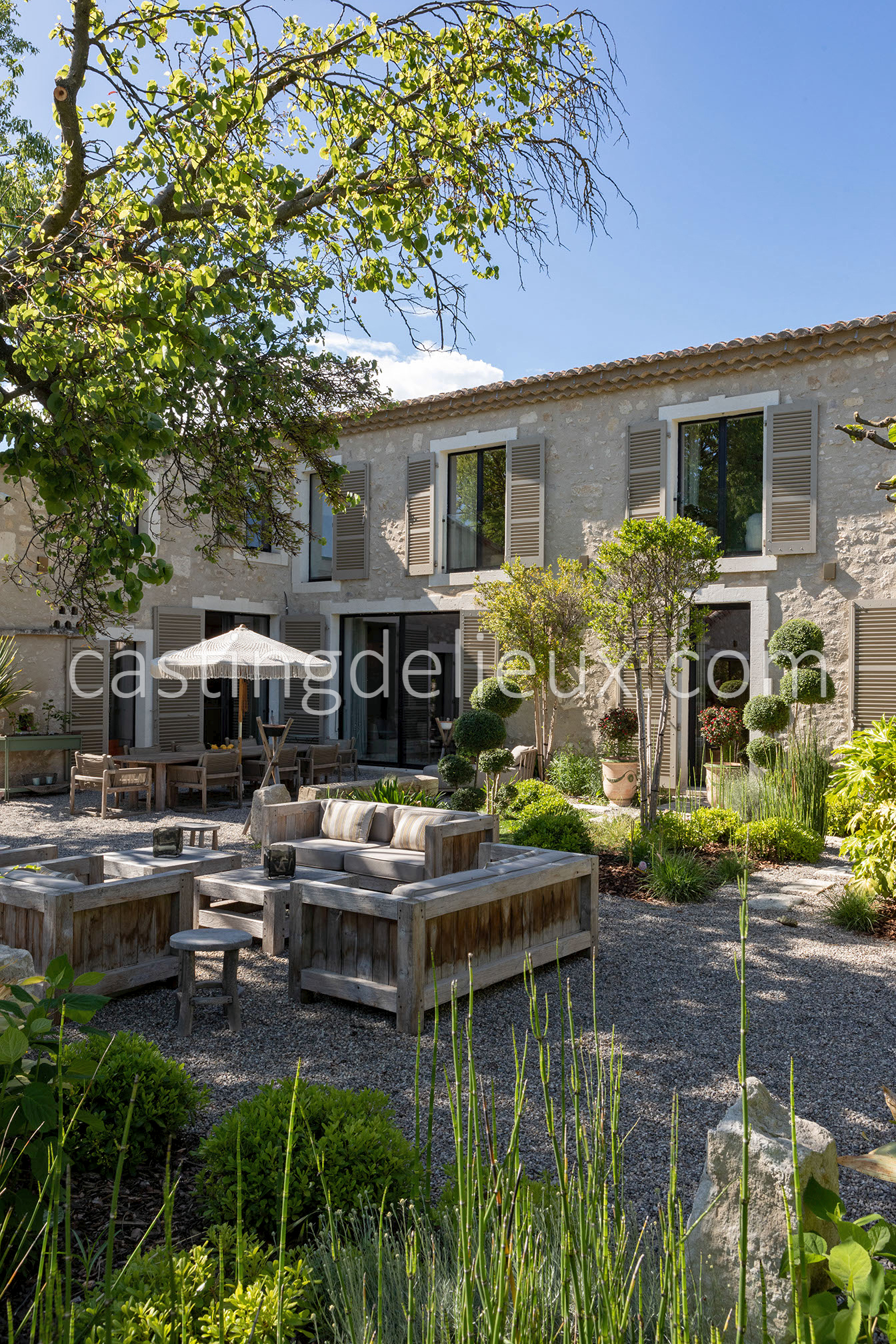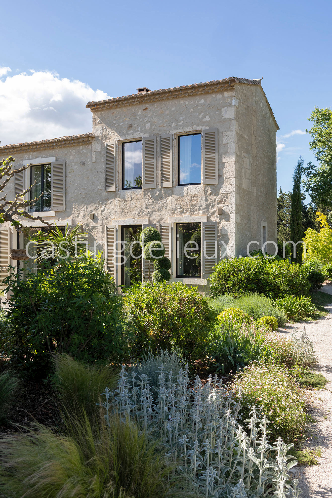 Charmante maison provençale à Saint-Rémy-de-Provence, décorée avec goût dans un style élégant et chaleureux. Grands espaces lumineux, jardin arboré et piscine en pierre. Idéale pour shootings photo ou tournages dans une ambiance sud authentique et raffinée. Association de blanc et de pierre dans la cuisine. Salle à manger, salon cheminée et salon bibliothèque, double bureau. 5 suites, chacune avec salle de bains et dressing. Une maison d'amis indépendante. Le parc aménagé par paysagiste primé, offre différents espaces. Une promenade au milieu des lavandes et des oliviers, vous conduira de l'étang au boulodrome.