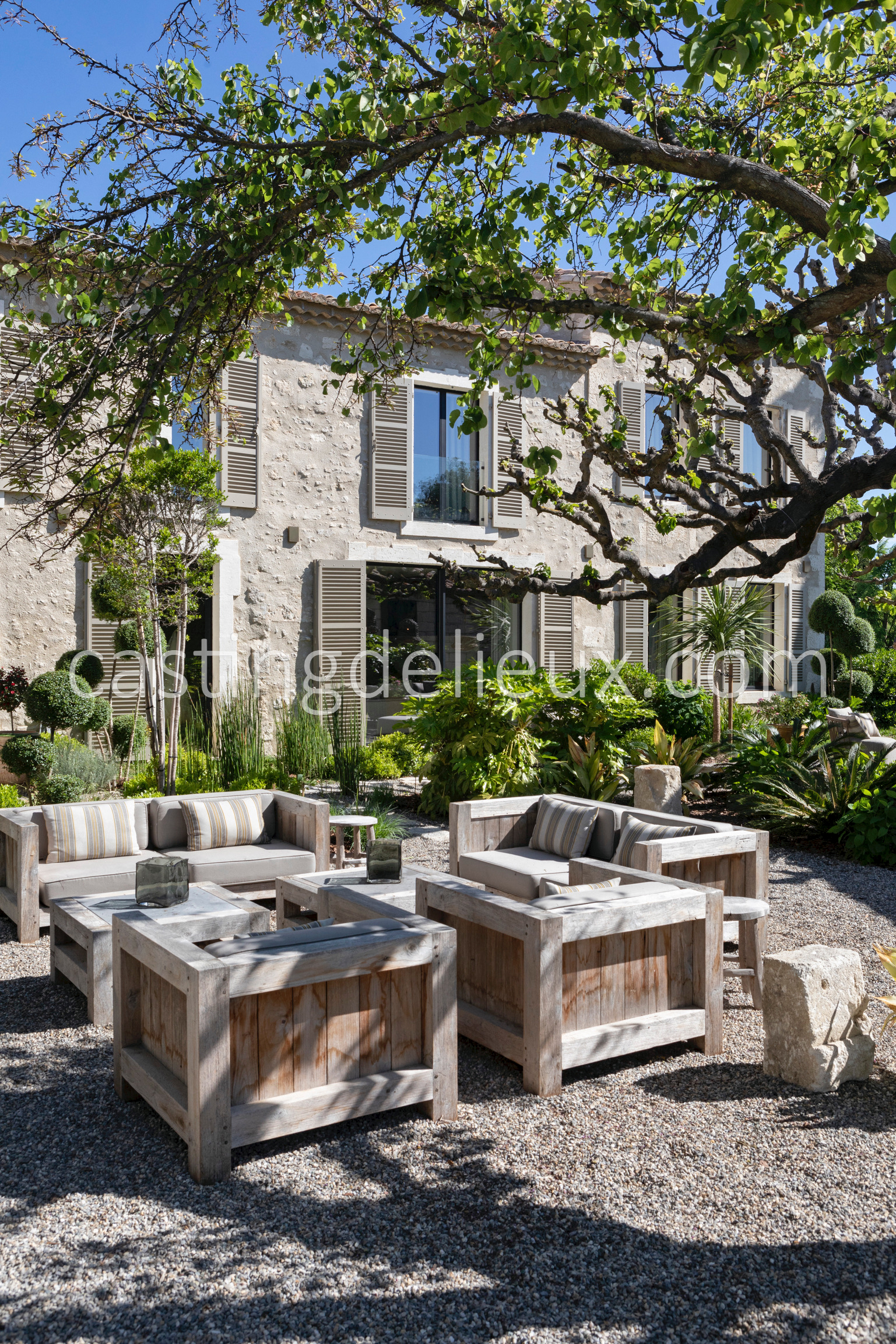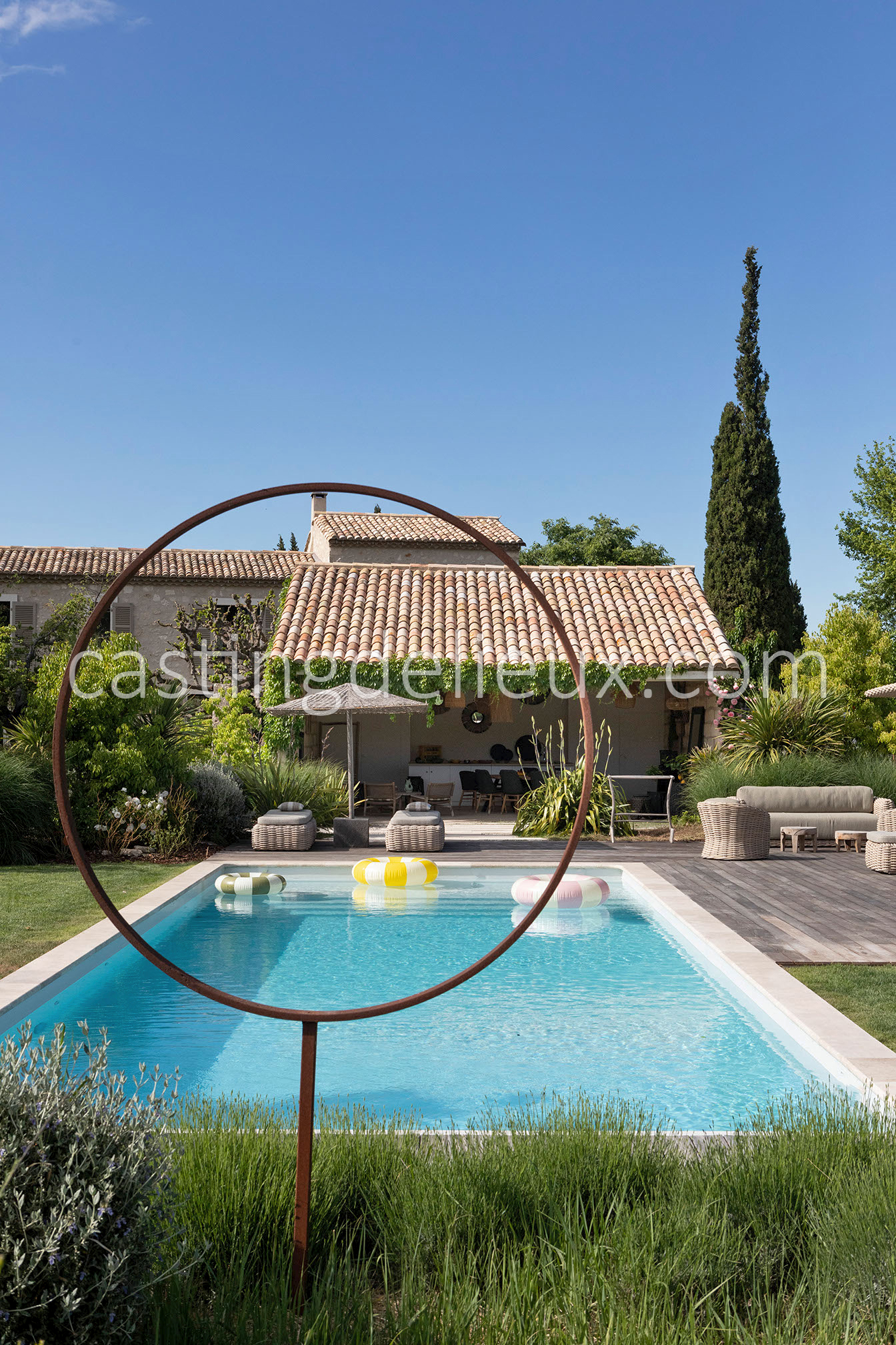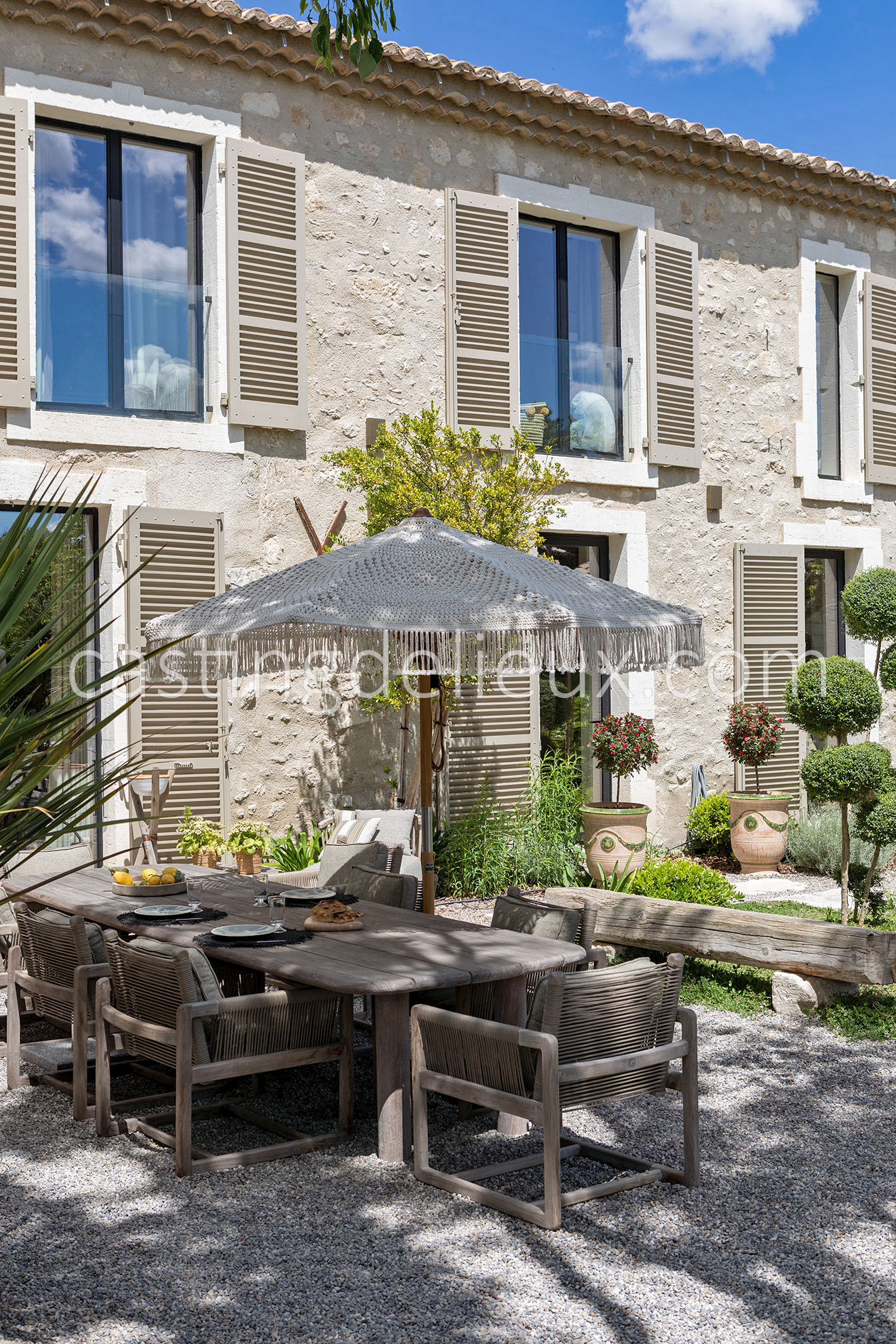 Charmante maison provençale à Saint-Rémy-de-Provence, décorée avec goût dans un style élégant et chaleureux. Grands espaces lumineux, jardin arboré et piscine en pierre. Idéale pour shootings photo ou tournages dans une ambiance sud authentique et raffinée. Association de blanc et de pierre dans la cuisine. Salle à manger, salon cheminée et salon bibliothèque, double bureau. 5 suites, chacune avec salle de bains et dressing. Une maison d'amis indépendante. Le parc aménagé par paysagiste primé, offre différents espaces. Une promenade au milieu des lavandes et des oliviers, vous conduira de l'étang au boulodrome.