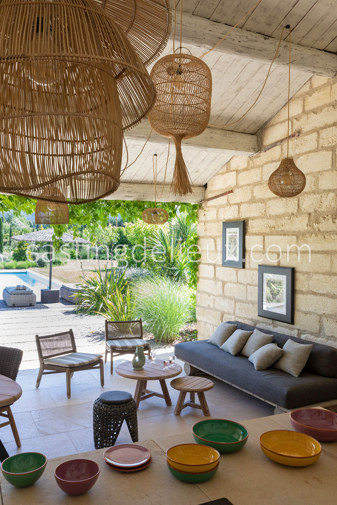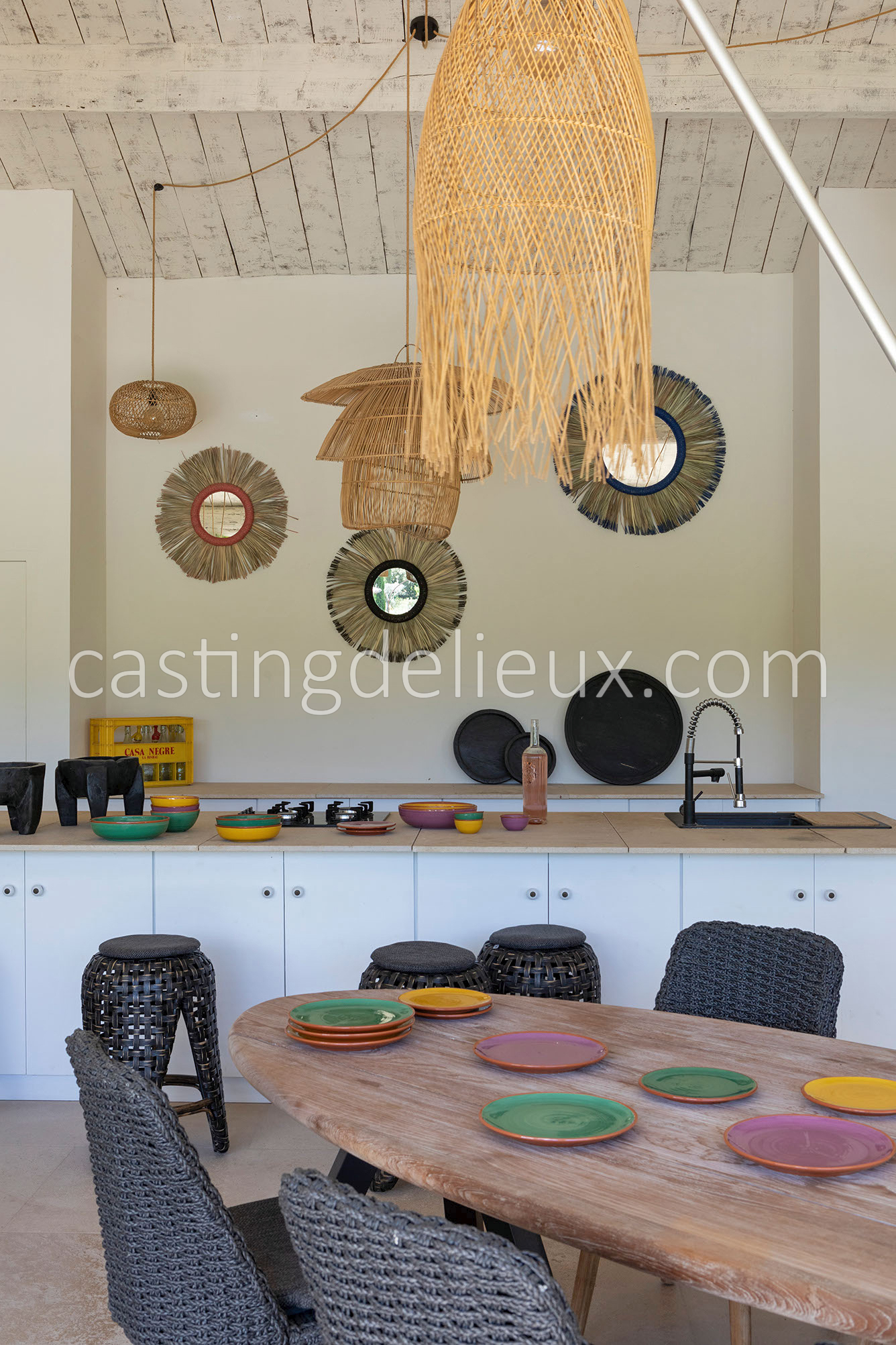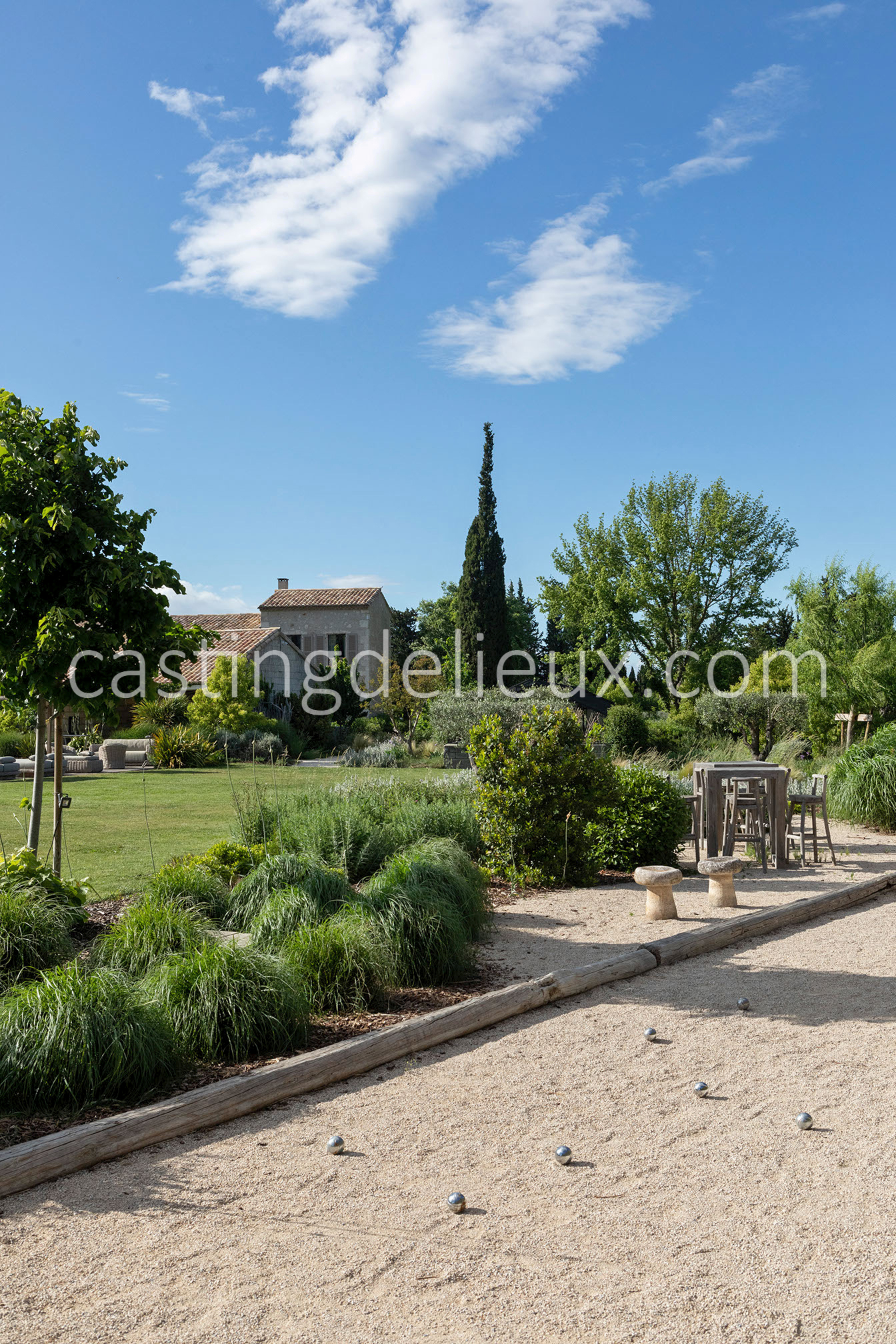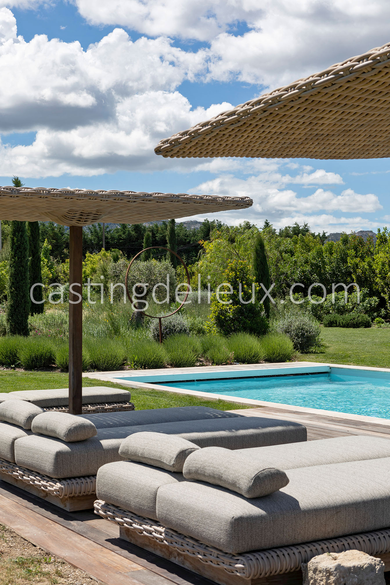 Charmante maison provençale à Saint-Rémy-de-Provence, décorée avec goût dans un style élégant et chaleureux. Grands espaces lumineux, jardin arboré et piscine en pierre. Idéale pour shootings photo ou tournages dans une ambiance sud authentique et raffinée. Association de blanc et de pierre dans la cuisine. Salle à manger, salon cheminée et salon bibliothèque, double bureau. 5 suites, chacune avec salle de bains et dressing. Une maison d'amis indépendante. Le parc aménagé par paysagiste primé, offre différents espaces. Une promenade au milieu des lavandes et des oliviers, vous conduira de l'étang au boulodrome.