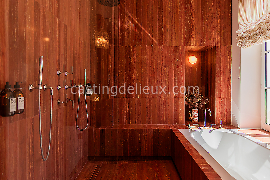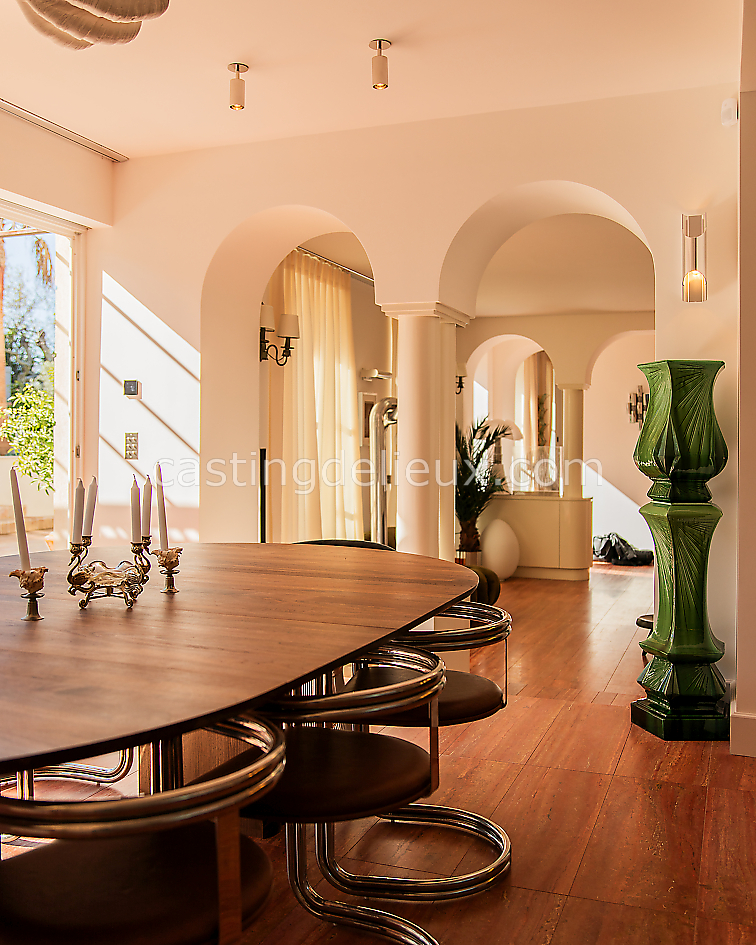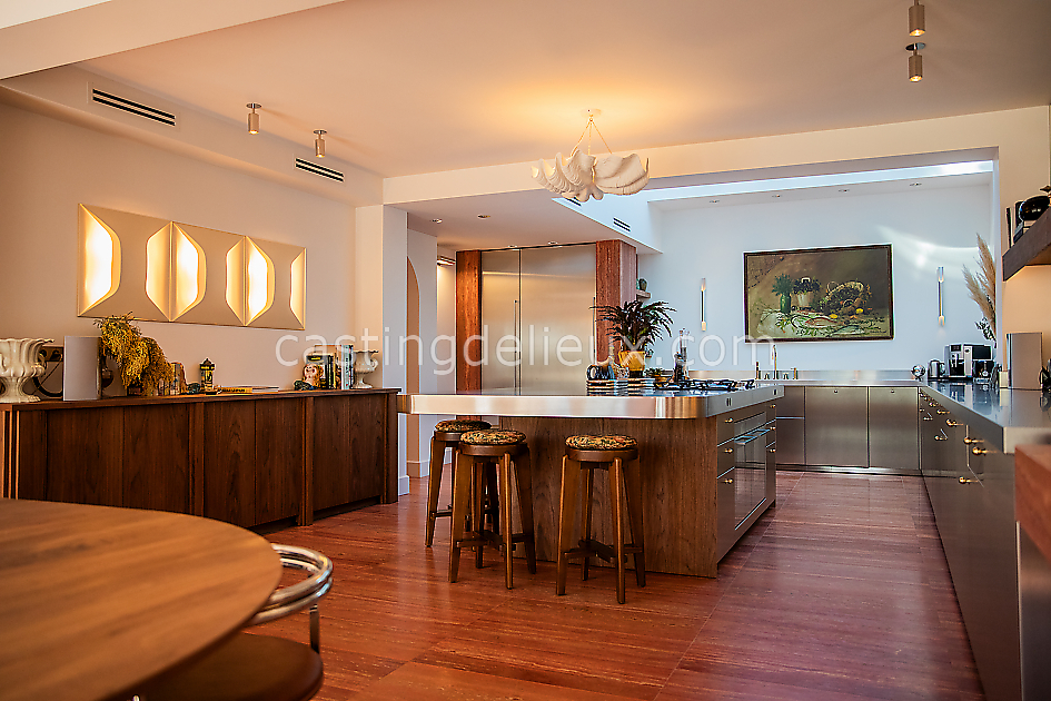 Grande maison de ville de 300 m² à Marseille (13), avec toit‑terrasse vue mer, piscine, spa (sauna, hammam) et salle de sport. Elle comprend quatre chambres en suite, deux salons, une cuisine de 70 m² avec cheminée, et un jardin/terrasse de 600 m². Idéal pour shootings mode, mobilier ou lifestyle dans un décor urbain‑mer haut de gamme.