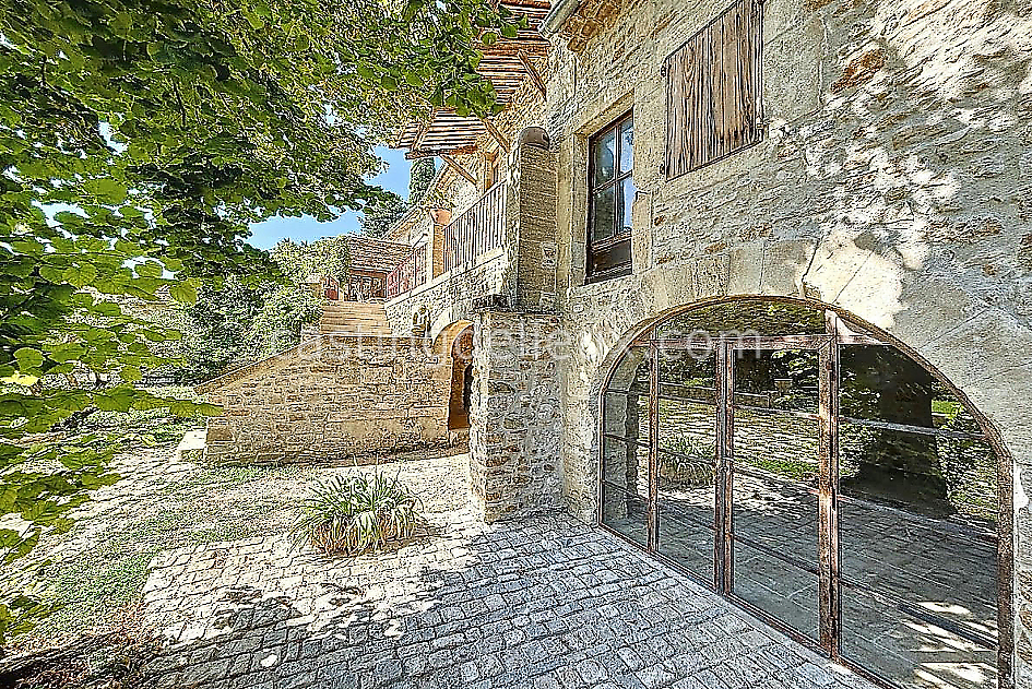 Escalier extérieur, Fontaine / Bassin décoratif, Piscine interieure, En campagne, Parc arboré, Terrasse carrelée / pierre