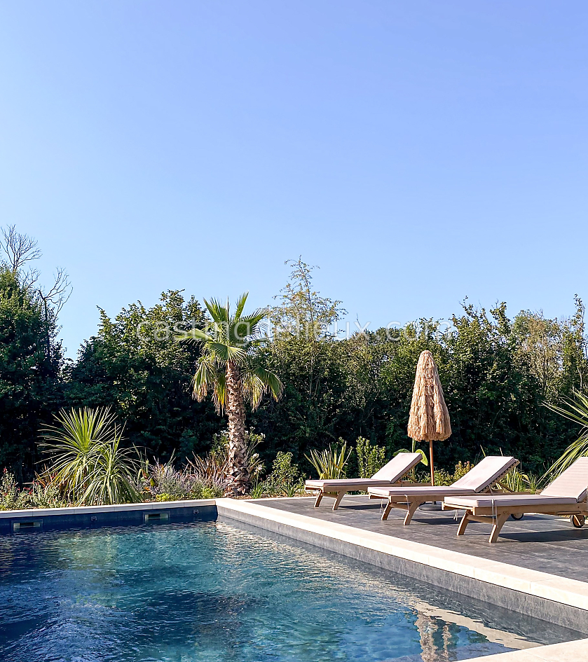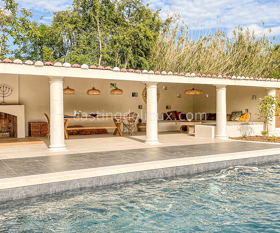| Environnement extérieur | Pool house / Cuisine d’été, En village, Piscine traditionnelle, Jardin paysager / à l'anglaise, Parc arboré, Terrasse carrelée / pierre, Terrasse couverte / pergola |